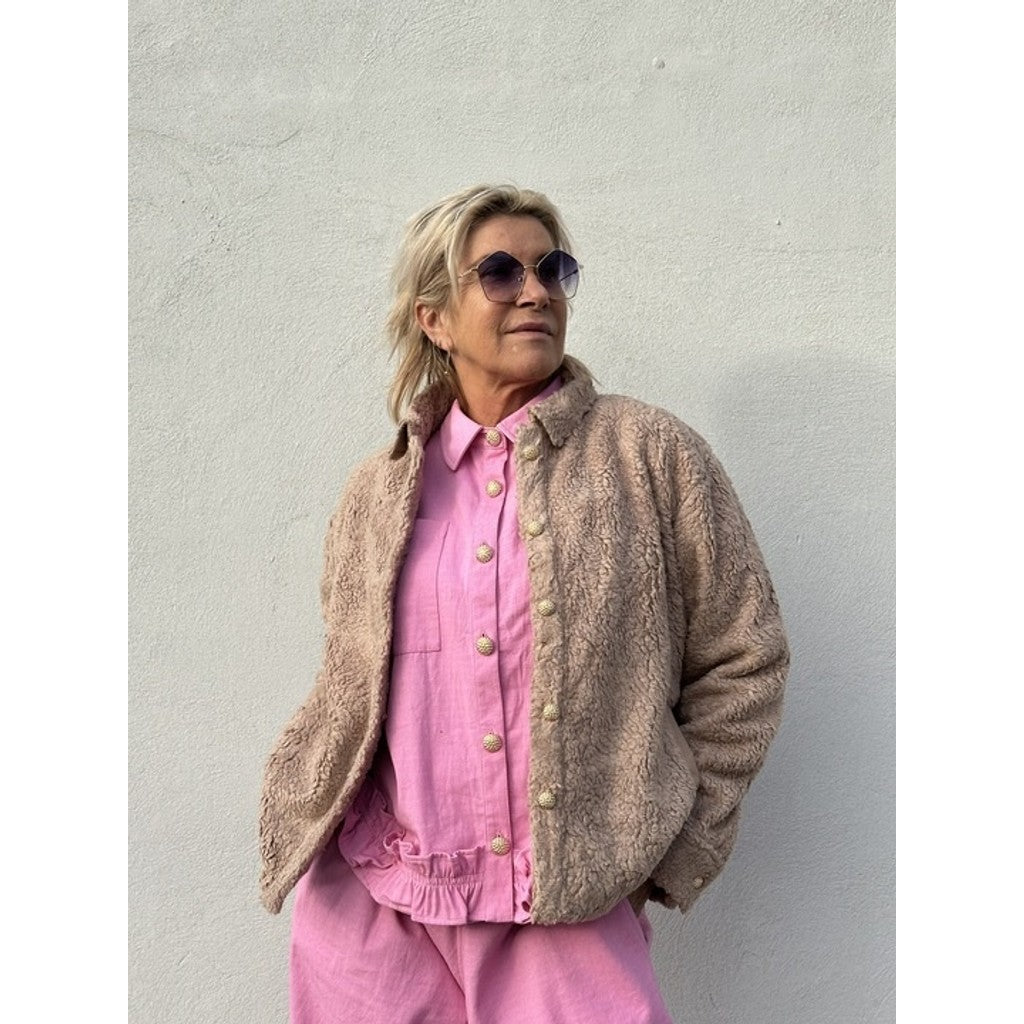 Harlem Duffy Jacket er en blød og hyggelig teddy-jakke med en afslappet, lige pasform, der giver et moderne og stilrent udtryk. Modellen har to praktiske lommer foran og lukkes med dekorative knapper, der understreger det elegante design. På ryggen prydes jakken af et smukt broderi, som giver et unikt og eksklusivt look.