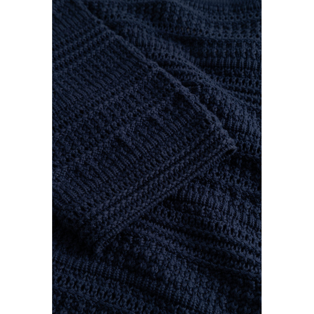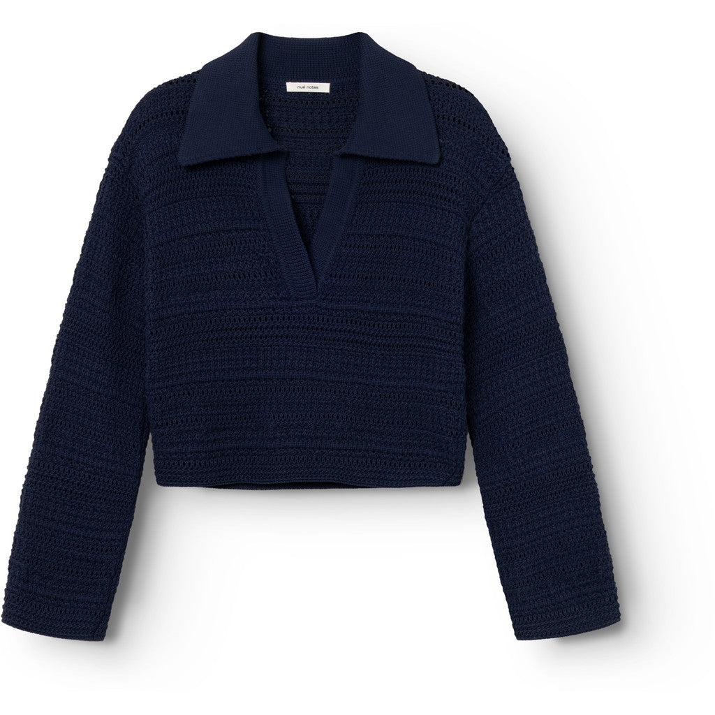 Experience comfort and style with our navy cropped polo shirt, perfect for any wardrobe. This polo shirt combines a crocheted look with a modern fit and is ideal for both casual and more formal occasions. The polo collar and the long, wide sleeves provide a relaxed and stylish appearance suitable for any occasion.